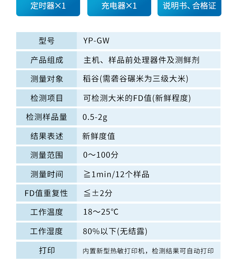 3、檢測項目:可檢測大米的FD值(新鮮程度);